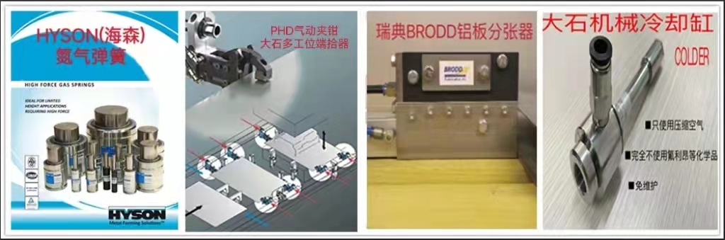 本公司是HYSON氮?dú)鈴椈稍谥袊?guó)的總代理,并提供管路設(shè)計(jì)及售后服務(wù)。同時(shí)還代理美國(guó)PHD氣動(dòng)夾鉗、SWEDEN機(jī)器人平衡缸、美國(guó)LSP噴涂系統(tǒng)、法國(guó)PRONIC模內(nèi)攻絲機(jī)等。另外,本公司還提供多工位模具自動(dòng)化端拾器產(chǎn)品,從設(shè)計(jì)、制造、運(yùn)輸、安裝、調(diào)試為客戶提供整套“交鑰匙”工程。